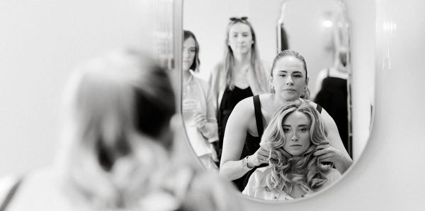 - Pre–wedding, in salon, blow-dry