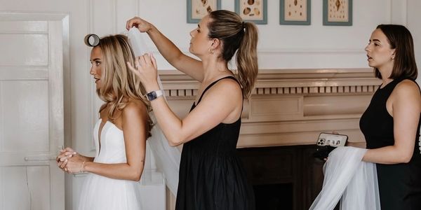 - On the day bridal styling, staying until your ceremony time for any last minute touch ups for you or your bridesmaids.